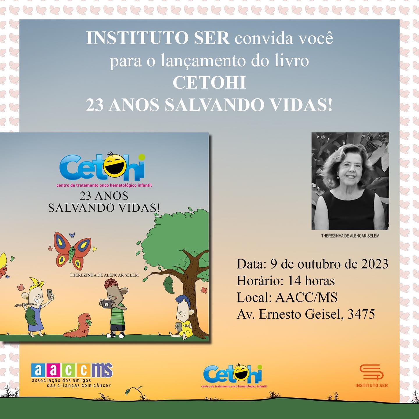 O lançamento será apenas para convidados no auditório da AACC/MS, mas o livro, publicado em parceria com o Instituto SER, já está disponível como e-book na Amazon e pelo Kindle Unlimited. Basta acessar: http://acesse.one/CETOHI23anos