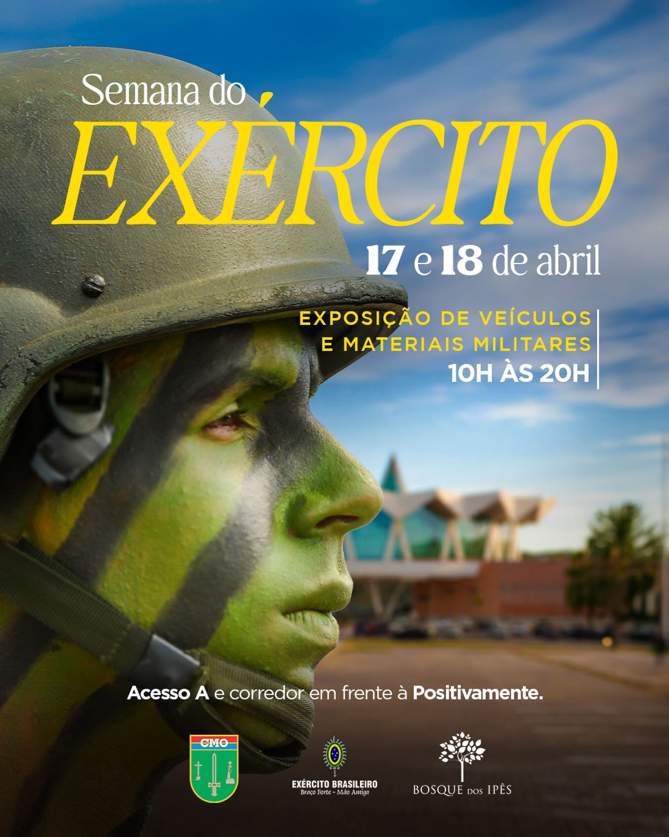 Em comemoração à Semana do Exército, o shopping recebe, nos dias 17 e 18 de abril, uma exposição com veículos e materiais de emprego militar. A ação acontece no Acesso A e no corredor em frente à academia Positivamente, proporcionando ao público a oportunidade de conhecer de perto estruturas e equipamentos utilizados pelas Forças Armadas. A atividade é gratuita e pensada especialmente para crianças e famílias.