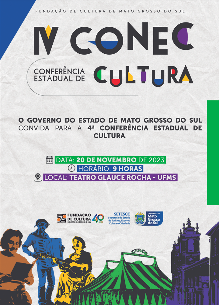 Para discutir as diretrizes da Política Estadual de Cultura, que envolve programas, projetos e ações que promovem o desenvolvimento cultural, Mato Grosso do Sul realiza a Conferência Estadual de Cultura entre os dias 20, 21 e 22 de novembro, em Campo Grande.