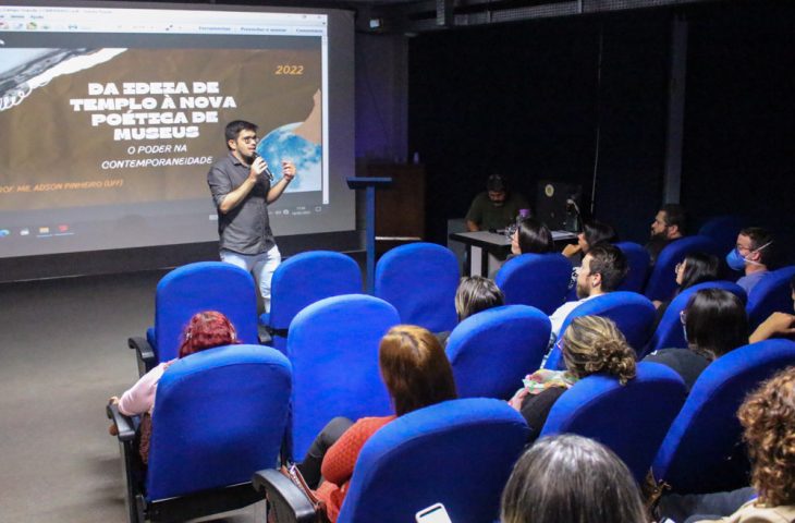 A palestra de abertura teve o tema “Da ideia de templo à nova poética de museus. O poder na contemporaneidade”, proferida pelo professor mestre Adson Pinheiro (UFF). “Será que esse templo que a gente tanto critica do museu foi destruído dentro de nós? Quanto desse templo ainda existe e a gente reproduz nessa prática diária , embora a gente também, de certa forma, critique essa prática diária do museu não apenas como um lugar de uma visita, um lugar que tem as verdades, mas um espaço também aberto a novos conceitos, novas experiências, que leva não só o pensar, o refletir, mas o agir”, indaga o professor.
