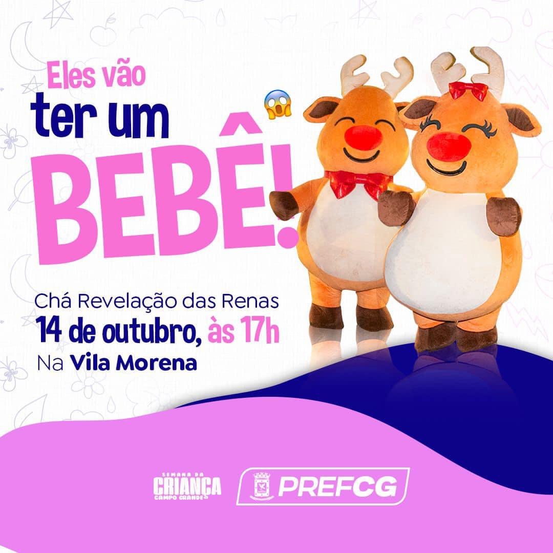 Depois do casamento que marcou a história de Campo Grande, com mais de 20 mil convidados durante o Natal do ano passado, o amor do Sr. e Sra. Rena deu fruto e agora eles retornam para o chá revelação do bebê Reninha. O evento acontece no próximo sábado (14), no mesmo local que marcou a história dos dois, a Vila Morena, às 17h durante a Semana da Criança.