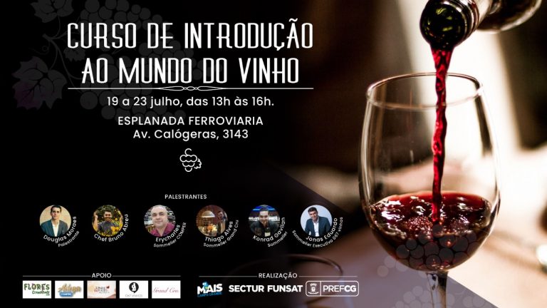 A Prefeitura de Campo Grande, por meio da Fundação Social do Trabalho (Funsat) e da Secretaria Municipal de Cultura e Turismo (Sectur), está com inscrições abertas para as 20 vagas do curso Introdução ao Mundo do Vinho. Com experiência de mais de 13 anos na área, as atividades serão coordenadas por Douglas Moraes.