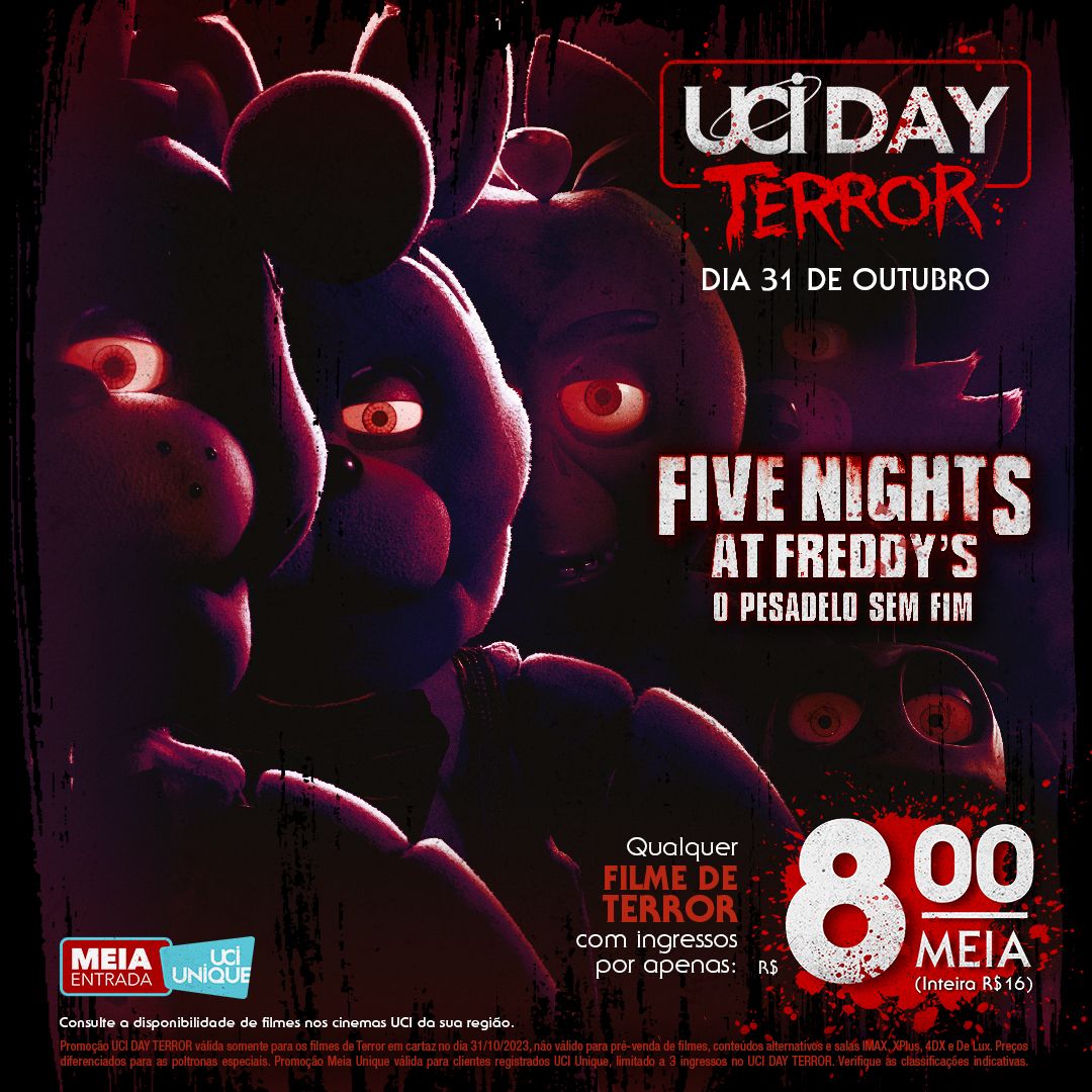 A UCI do Bosque está chegando com uma seleção de filmes de arrepiar, e os ingressos já estão disponíveis no site. Por apenas R$8 a meia, está promoção é válida para qualquer filme de terror, durante o dia 31.