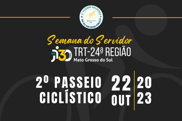Em comemoração ao dia do Servidor Público, o Tribunal Regional do Trabalho da 24ª Região realizará, no dia 22 de outubro, o 2º Passeio Ciclístico. O evento é organizado pelo Núcleo de Saúde e Programas Assistenciais do TRT/MS em parceria com o Tribunal Regional Eleitoral (TRE/MS), Justiça Federal – Seção Judiciária de Mato Grosso do Sul, ANAJUSTRA, Fundesporte, Unimed Campo Grande, ENERGISA, SINDJUFE-MS e FIEMS.