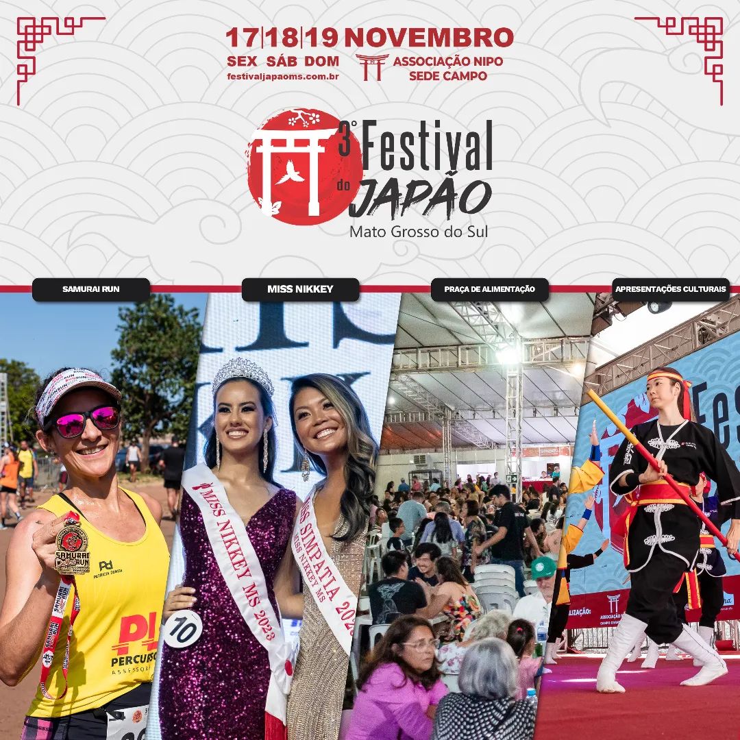 Campo Grande vai receber a 3ª edição do 'Festival do Japão MS', o maior festival de cultura japonesa do estado. O evento, organizado pela diretoria da Associação Esportiva e Cultural Nipo Brasileira de Campo Grande, garante uma extensa programação que inclui shows musicais, danças típicas, exposições, oficinas, gastronomia, concursos, atividades para todas as idades e todos os gostos. Ao todo serão três dias de atividades, sexta (17), sábado (18) e domingo (19).