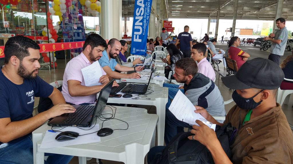 A Prefeitura de Campo Grande realizou ontem, quarta-feira (11), a Funsat Atende – Especial Grupo Pereira, no Fort Atacadista da Avenida Coronel Antonino. Foram ofertadas vagas nas áreas de: operador de caixa, auxiliar de depósito, repositor, auxiliar de prevenção e auxiliar de perecíveis. Ao todo 114 pessoas compareceram, sendo 75 aprovados na primeira etapa do processo seletivo.