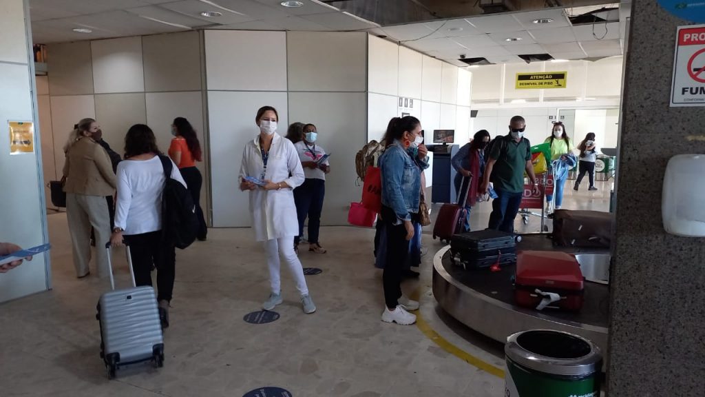 A dinâmica, tanto no aeroporto quanto na rodoviária, é a mesma. Os técnicos da Sesau fazem a abordagem e a triagem inicial do passageiro na sala de desembarque e indicam o local para realização do teste de antígeno (Swab), que fica pronto de 15 a 20 mínutos e possui alto grau de confiabilidade.