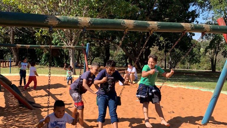 No Cras Moreninhas, a colônia de férias ofereceu um dia de lazer. Os educadores e técnicos da unidade foram até o Parque das Nações Indígenas. A estudante Vitória Antunes, 9 anos, ficou emocionada com a visita.