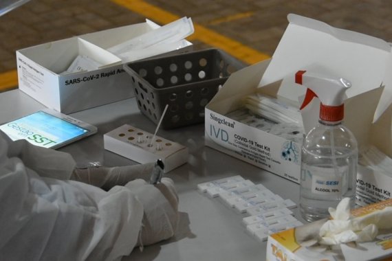 O exame oferecido será o teste rápido de antígeno para diagnosticar a covid-19. A secreção nasal é colhida por meio de um swab nasal (cotonete específico) introduzido na narina. Essa é a forma de identificar se o paciente apresenta infecção viral ativa.