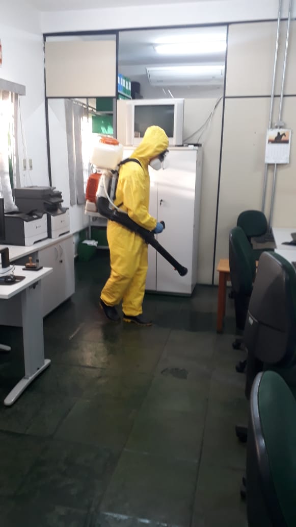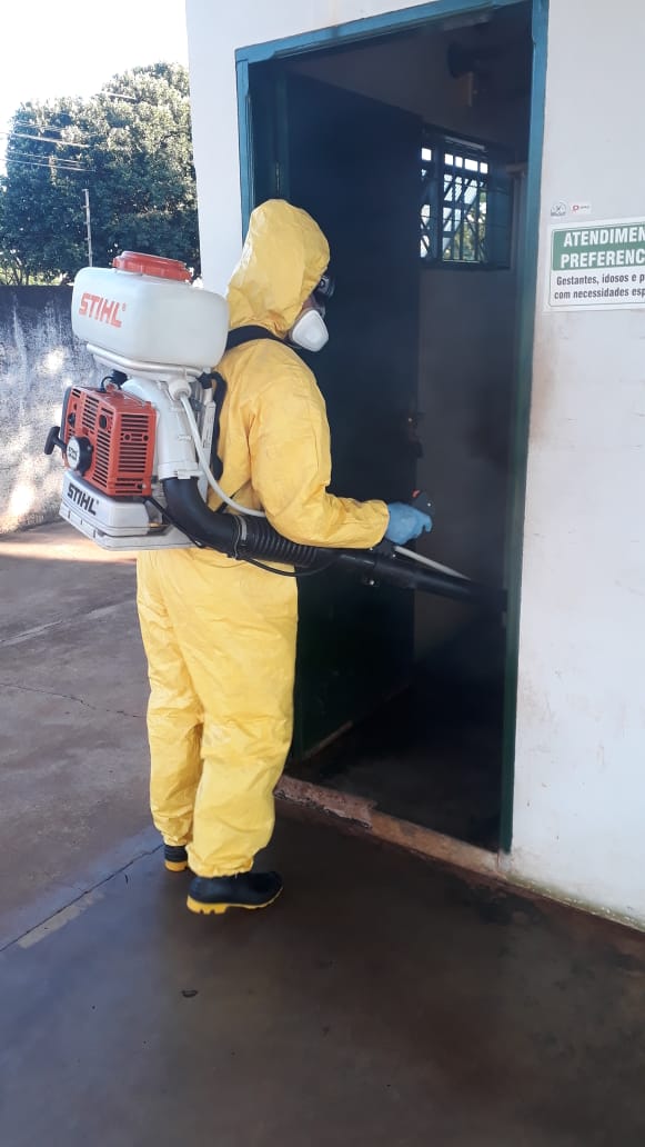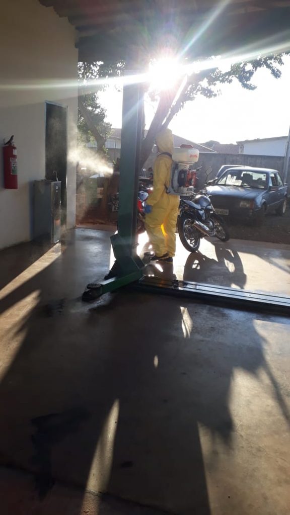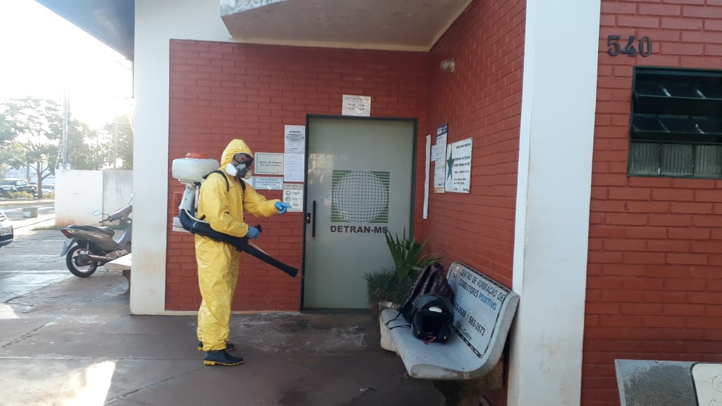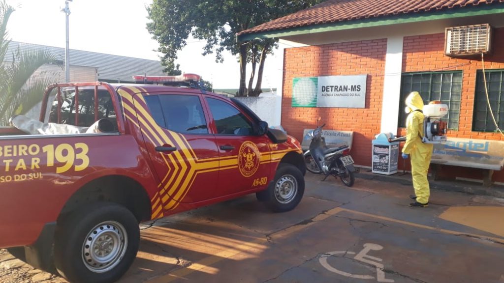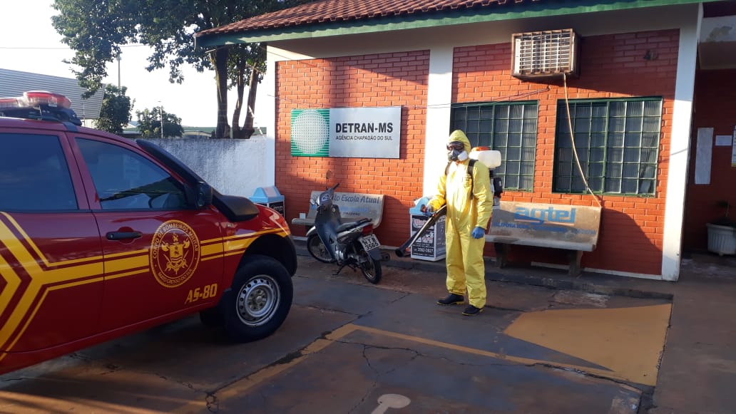 O Corpo de Bombeiros Militar em Chapadão do Sul realizou na tarde desta sexta-feira (09) a sanitização do prédio da Agência de Trânsito do município. A ação, fruto da parceria do CBMMS, através do 7º Subgrupamento de Bombeiros Militar Independente e Prefeitura Municipal de Chapadão do Sul, através da Secretaria de Saúde Municipal e Controle de Endemias, tem o objetivo de reduzir os riscos de contágio pela COVID-19 através da aplicação com uso do equipamento pulverizador costal da mistura de água e hipoclorito de sódio em todas as dependências de prédios públicos do município. O Corpo de Bombeiros Militar em Chapadão do Sul tem realizado frequentemente neste ano a sanitização do Hospital Municipal, Terminal Rodoviário e Praças do município, além de fiscalização diária do toque de recolher estipulado pelo Estado e permanecerá atuando conjuntamente com outros órgãos e entidades para redução das contaminações e consequentes internações em virtude da COVID-19, dessa forma cumprindo sua missão de salvaguardar vidas e bens.