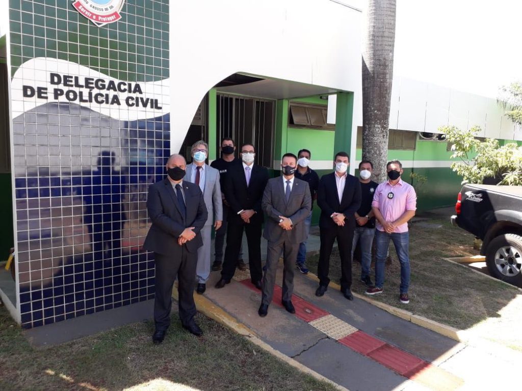 Durantes a visita nas unidades, Dr. Adriano, juntamente com o Diretor do Departamento de Polícia do Interior (DPI), Dr. Lupérsio Degerone Lúcio, Delegado Regional de Três Lagos, Dr. Fernando M.de Faria, Delegado titular de Agua Clara, Dr. Luis Augusto Milani, conversou com demais delegados, escrivães e investigadores sobre as necessidades da Polícia Civil e destacou os novos projetos.