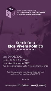 Realizado pelo Fórum Permanente Pela Paridade Institucional e Política das Mulheres, em parceria com o Tribunal Regional Eleitoral de Mato Grosso do Sul (TRE-MS), o evento começa às 13h30, no auditório do TRE-MS, e também será transmitido ao vivo pelo canal do Tribunal no Youtube.