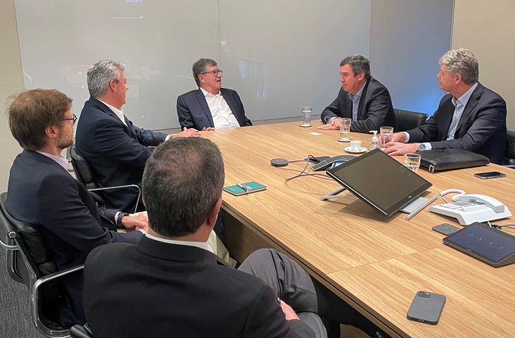 Em defesa dos interesses do Estado, o governador Eduardo Riedel se reuniu nesta segunda-feira (27) com empresários do setor de energia e logística, no escritório do Grupo Cosan, em São Paulo. Durante o encontro ele apresentou as potencialidades de Mato Grosso do Sul e tratou de temas importantes, como infraestrutura e malha ferroviária.