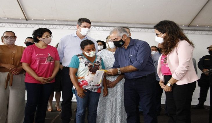 O governador Reinaldo Azambuja fez a entrega de cartões em Sidrolândia nesta quinta-feira (07). O Mais Social atende famílias em situação de vulnerabilidade social, insegurança alimentar e nutricional. O programa do Governo do Estado paga R$ 200 mensais para beneficiários que têm renda mensal familiar per capita inferior a meio salário mínimo.