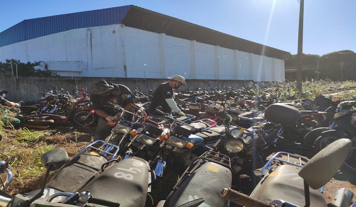 O Detran-MS (Departamento Estadual de Mato Grosso do Sul) deu início hoje a retirada de 110,35 toneladas de material inservível dos pátios da Agência em Ponta Porã. São 1.054 motos e 29 carros, que ocupavam o espaço desde 2019.