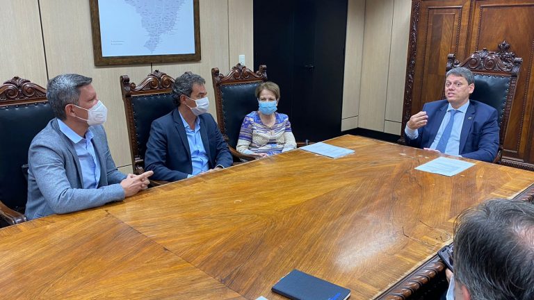 O prefeito de Campo Grande, Marquinhos Trad, acompanhado da ministra da Agricultura, Pecuária e Abastecimento, Tereza Cristina, se reuniu com o ministro da Infraestrutura, Tarcísio de Freitas, na tarde desta quarta-feira (22), em Brasília. No encontro, o ministro assegurou prioridade em importantes projetos de infraestrutura para Campo Grande, com destaque para a reativação da Malha Oeste.