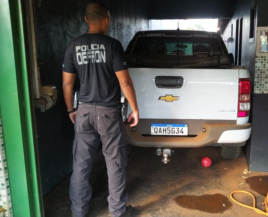 A polícia Civil, por meio da Delegacia Especializada de Repressão de Crimes da Fronteira (Defron), no âmbito da Operação Hórus apreendeu, no final da tarde desta terça-feira (06), uma camionete GM S10, produto de furto em Minas Gerais, que se encontrava com as placas trocadas.