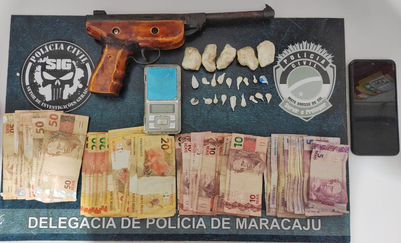 Maracaju (MS): A Polícia Civil, través da Delegacia de Polícia de Maracaju, apreendeu, na noite desta terça-feira (27), um adolescente, de 18 anos, pelos crimes análogos à tráfico de drogas e posse de arma de fogo de uso permitido, no bairro Vila Margarida.