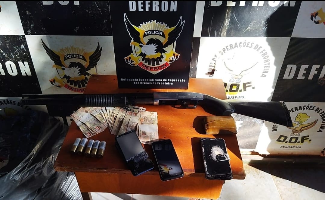 Ao realizar diligências em Ponta Porã, a Defron visualizou, em frente a uma residência localizada no Bairro Ipê I, indivíduos que aparentemente negociavam a venda de drogas. Ao identificarem a viatura policial os três indivíduos adentraram correndo para dentro do imóvel, sendo acompanhados pelos policiais. No interior do imóvel os policiais constataram que havia vários fardos de maconha, que pesados totalizaram 350 quilos, vários invólucros contendo skunk e uma espingarda calibre 12, municiada.