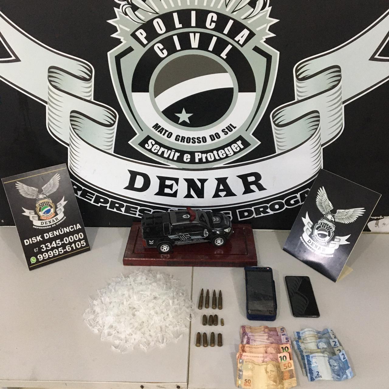 A prisão ocorreu durante trabalho de investigação oriundo da Operação Ômega, realizada em caráter permanente pela Delegacia Especializada. Foram aprendidas quatro munições de calibre 7,62mm, três munições de calibre .45 , quatro munições de calibre .44, uma munição calibre .25, além de dinheiro trocado e microtubos utilizados para preparar porções de cocaína.