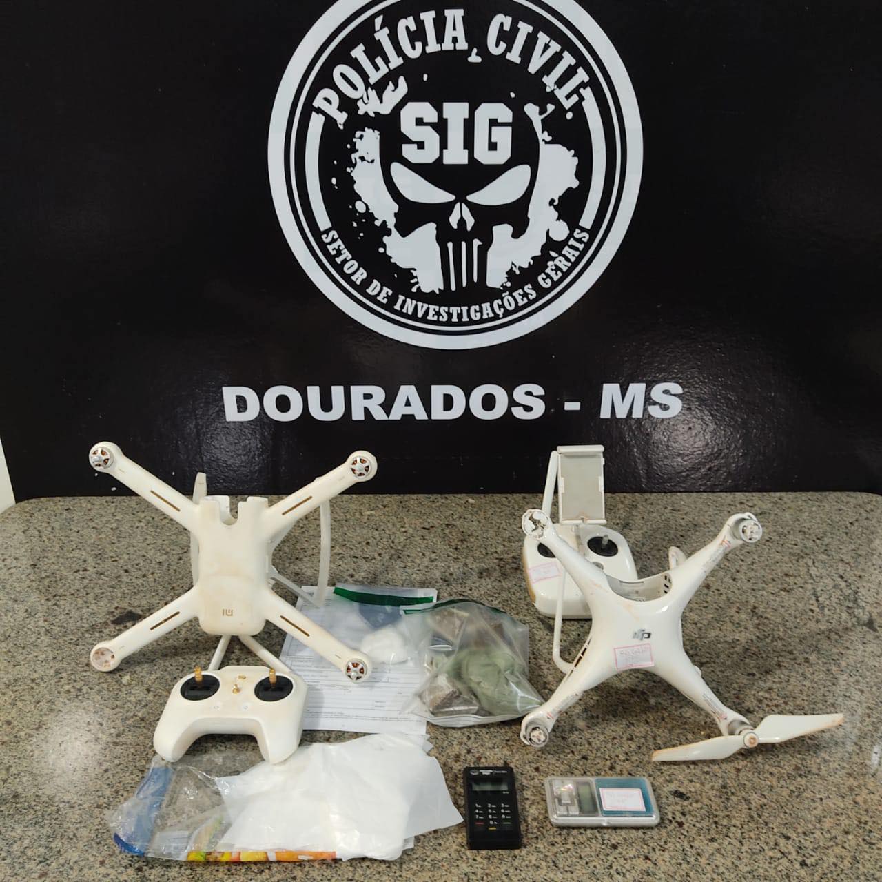 Durante as diligências, os investigadores perceberam o intenso movimento no local em situação típica de venda de drogas. Após ter permissão de um casal que habitava o imóvel, equipe de investigadores entraram no local. Durante as buscas, foram encontrados dois drones da marca Phanton, com avarias aparentes, uma máquina de cartão de crédito, uma balança de precisão, sacos plásticos utilizados para embalar a droga fracionada para venda, uma trouxinha pesando 292 gramas de maconha dentro do congelador da geladeira, e uma trouxinha de cocaína pesando 10 gramas. Ao serem questionados sobre os entorpecentes o casal argumentou que era para consumo próprio.