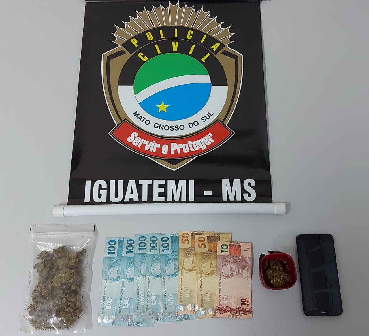 Na primeira vez que esse alvo foi capturado pela Polícia Civil de Iguatemi, estava transportando uma grande quantidade de Skunk, numa mochila, quando acabara de descer do ônibus que vinha do município de Mundo Novo.