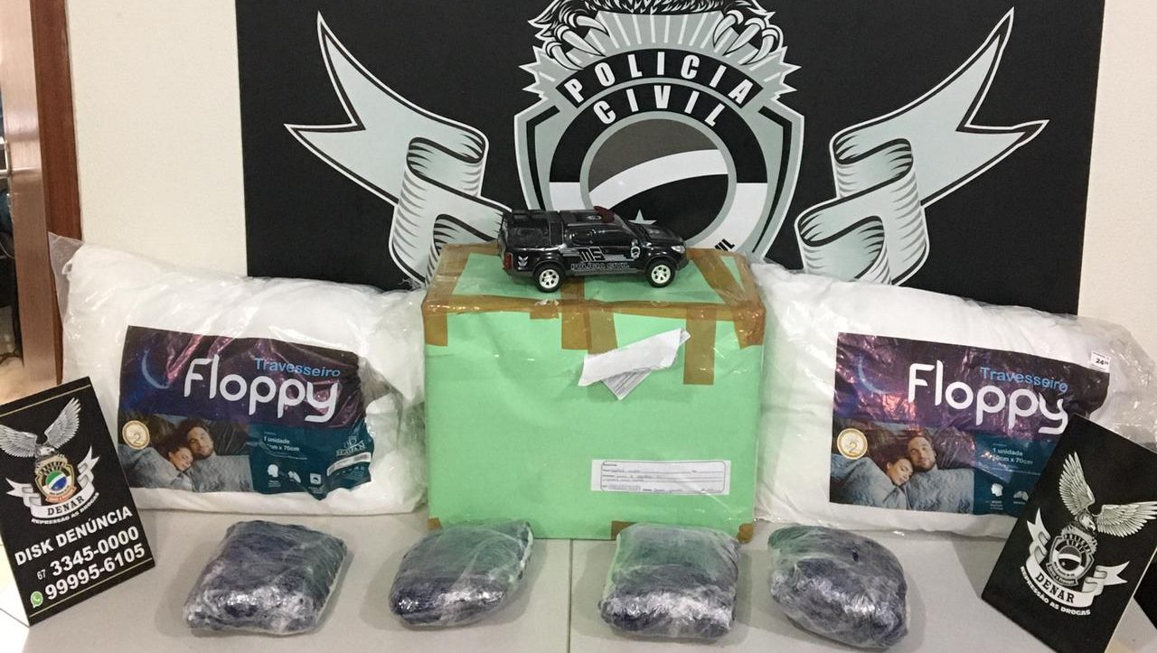 A apreensão ocorreu durante trabalho de investigação oriundo da Operação Ômega, realizada em caráter permanente pela Delegacia Especializada. A droga estava escondida em dois pacotes (dentro de travesseiros) com destinos a outros Estados do país.