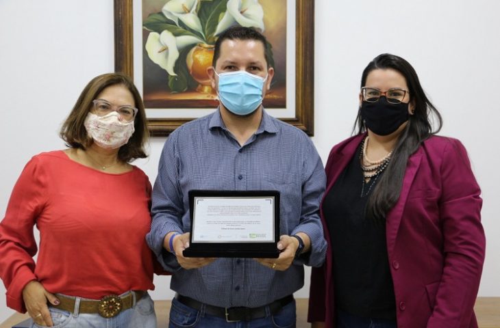 Equipe estadual e representantes do município de Corumbá-MS, reconhecido também pelas boas práticas, Mabel Marinho Sahib Aguilar (secretária-adjunta) e Sandra Regina de Almeida dos Santos (membro do Comitê Gestor Municipal)
