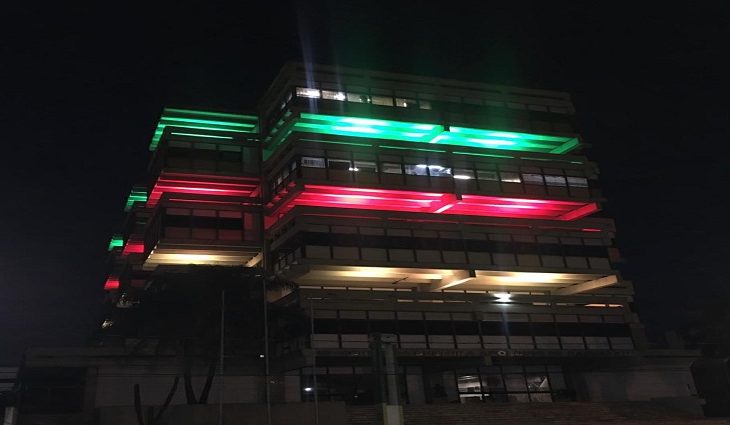 O vermelho representa o sangue da luta do povo negro, o verde as matas, o azul o céu, o amarelo o ouro/riquezas e a preta a cor da pele. Neste contexto, a iluminação do prédio vem carregada de simbolismo e, em especial, respeito.