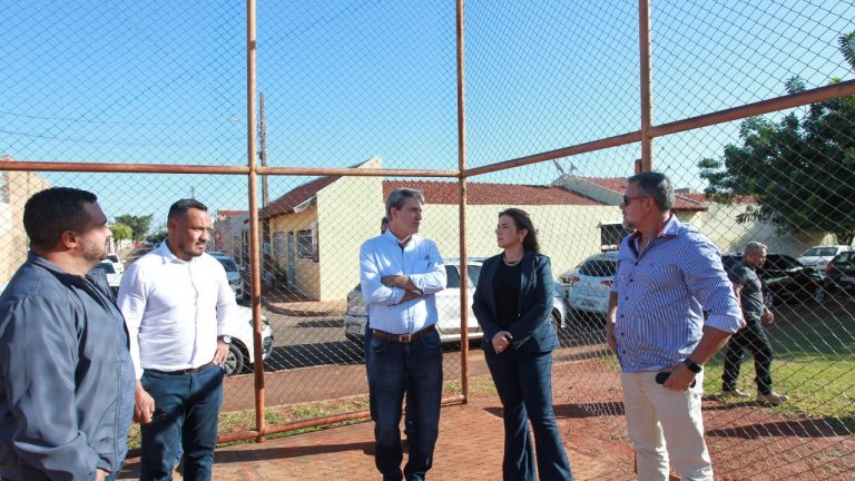 A prefeita de Campo Grande Adriane Lopes fez a vistoria das quadras poliesportivas no Jardim Itamaracá e nos conjuntos habitacionais Paulo Coelho Machado e Aero Rancho, que servirão de base para a instalação de três módulos esportivos com grama sintética e quadra de basquete, iluminação de LED e arquibancadas com capacidade para 100 pessoas.