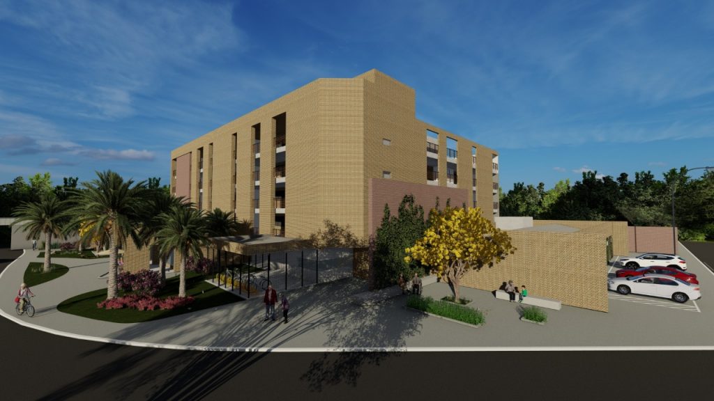 Os apartamentos terão 33,70m², com sala integrada cozinha, área de serviço e quarto com banheiro já atendendo as normas de acessibilidade, tanto para mobilidade reduzida quanto o portador de cadeira de rodas. Será adotado um modelo de locação social.