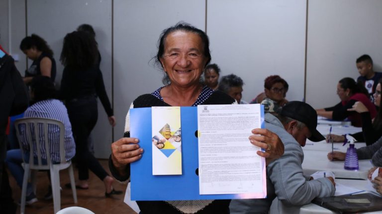Bruna Carolina Epifânia Alves, 27 anos, mora sozinha com os 3 filhos pequenos. Com um bebê de 8 meses, ela conta que está desempregada no momento. Por isso, a assinatura do contrato do seu lote no Canguru é uma conquista tão significativa para sua vida. Vivendo de benefícios sociais, ela só pode contar de imediato com o apoio do Poder Público para sustentar sua família. “Não vejo a hora de poder começar a construir o meu cantinho. A intenção é pegar, por enquanto, parte do auxílio que recebo para comprar materiais de construção. Sei que vai dar certo”, disse com orgulho.