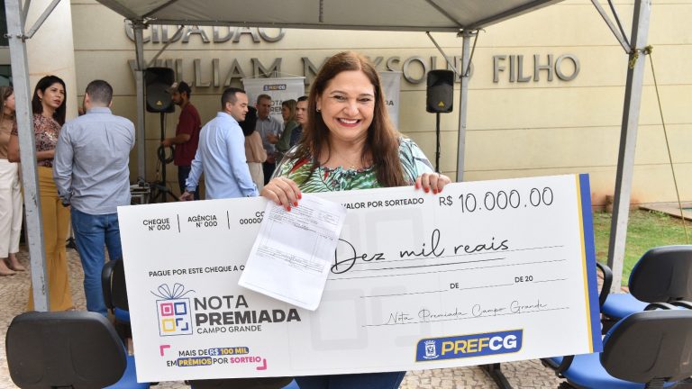 A Prefeitura entregou nesta terça-feira (09) a premiação de R$ 115 mil reais do sorteio da 1ª edição do ano da Nota Premiada Campo Grande. O prêmio se refere à emissão de notas fiscais dos três primeiros meses de 2023. Agora, os prêmios serão entregues a cada 3 meses, com um total de 11 ganhadores a cada edição, sendo três prêmios de 20 mil Reais, três de 10 mil reais e cinco prêmios de 5 mil reais.