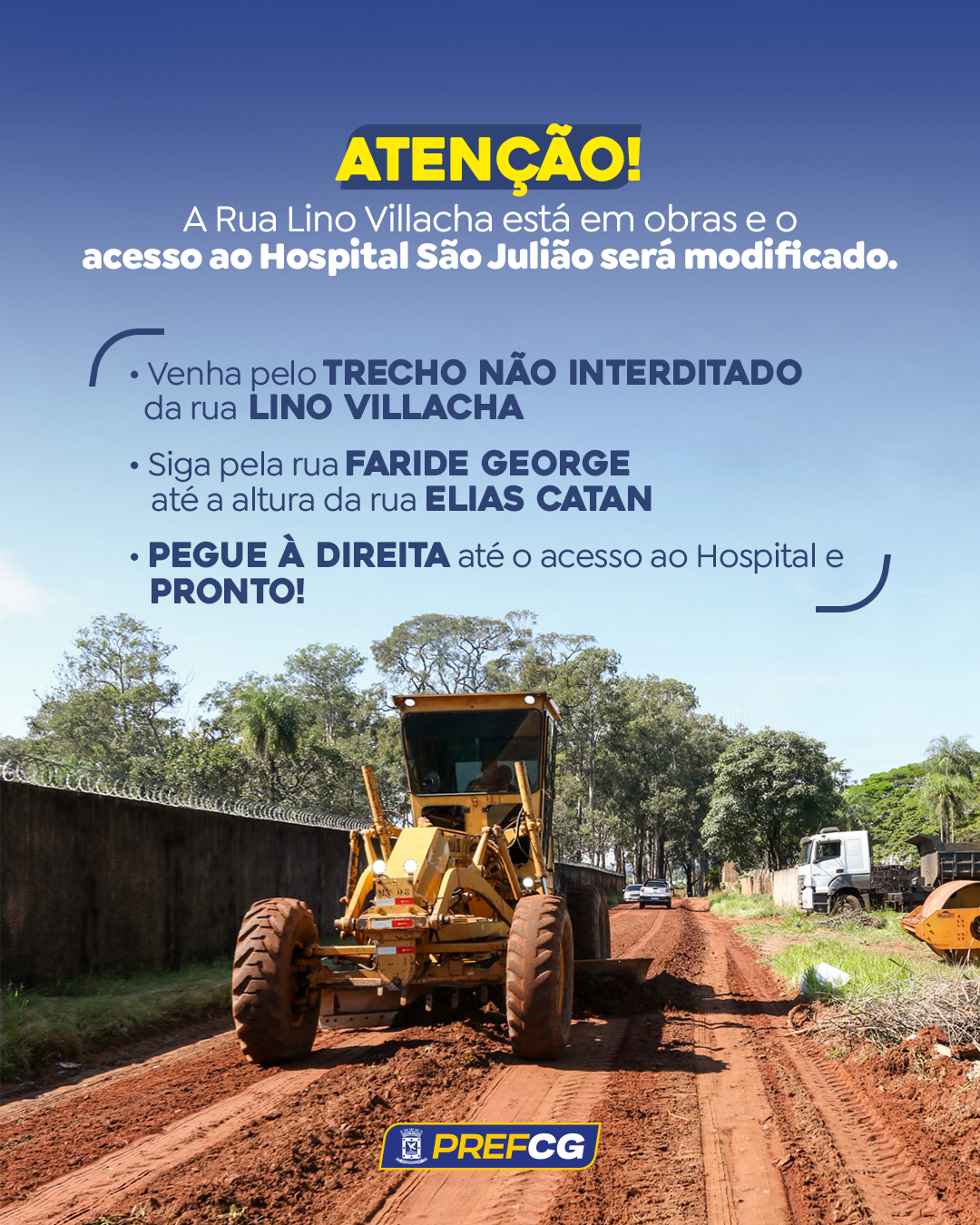 Segundo a Secretaria, o motorista que vier pelo trecho não interditado da Rua Lino Vilacha, deverá seguir pela Rua Faride George até a altura da Rua Elias Catan, onde deverá pegar a direita até o acesso ao hospital.