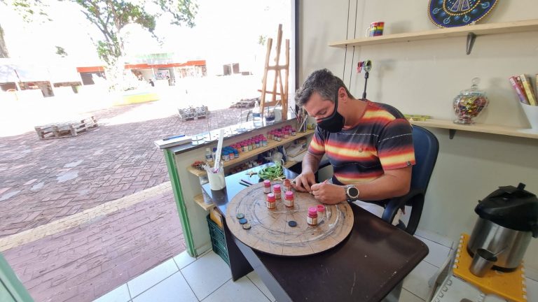 Desde dezembro do ano passado na Praça dos Imigrantes produzindo os artigos, Mauro diz que depois que abriu a sua loja no espaço, a Oruam Mandalas tem sido muito mais vista e as vendas aumentaram significativamente. “As vendas aumentaram consideravelmente. Estou gostando muito, não só o convívio com as pessoas, mas o local tem uma energia muito boa. Esse Centro tem uma energia muito boa”.