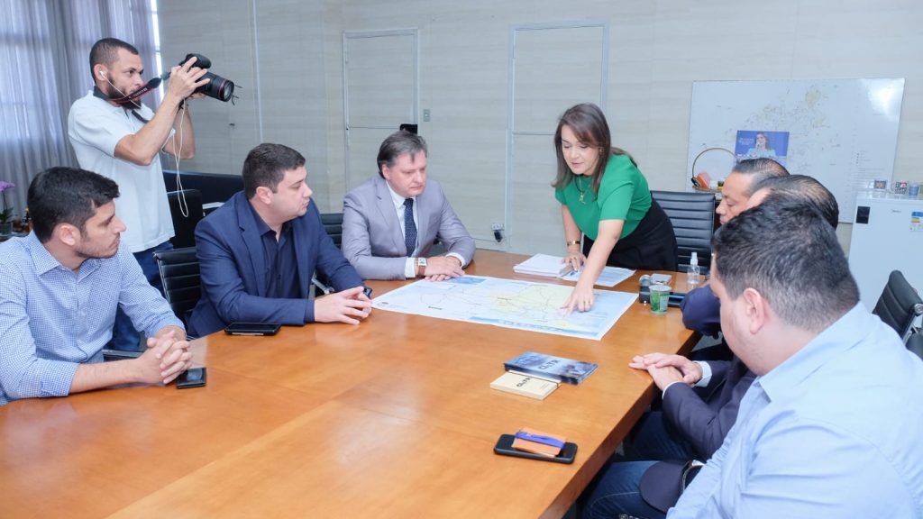 Acompanham a reunião os membros da CKTR Serviços André Cortez, diretor operacional, Milton Bento, gerente comercial e Marco Antônio Pereira Dias, coordenador comercial, o empresário Filipe Trindade, além dos secretários municipais Adelaido Vila da Sidagro, Catiana Sabadin da Sugepe e Antônio Lacerda da secretario de Governo.