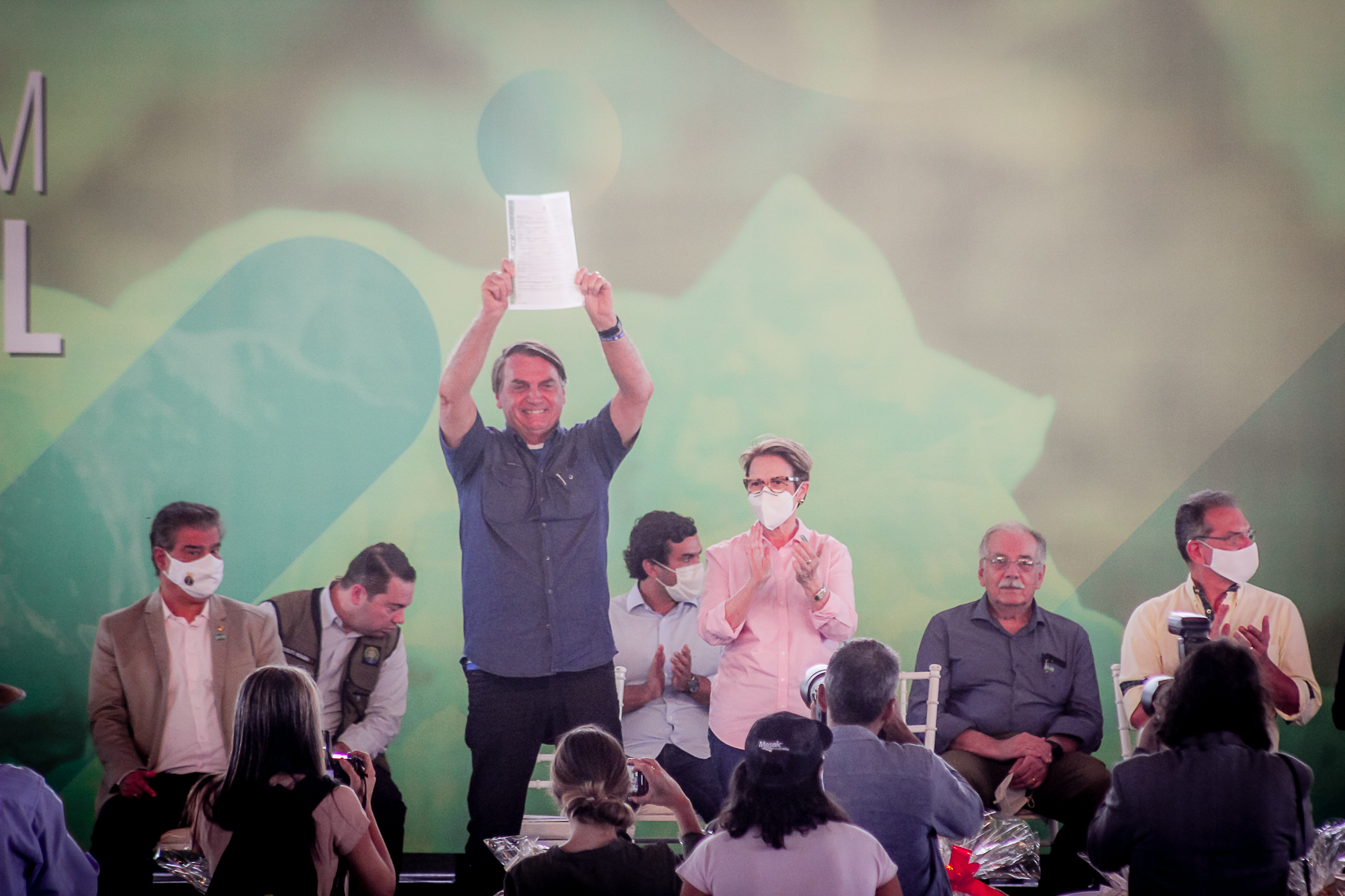 Nesta sexta feira (14) em uma solenidade muito prestigiada no assentamento rural Santa Mônica localizado no município de Terenos, o prefeito Henrique Wancura Budke juntamente com o presidente da Assomasul Valdir Junior, receberam diversas autoridades políticas em especial o presidente da República Jair Bolsonaro e da Ministra da Agricultura Pecuária e Abastecimento Tereza Cristina e também do presidente do Incra Geraldo Melo Filho.