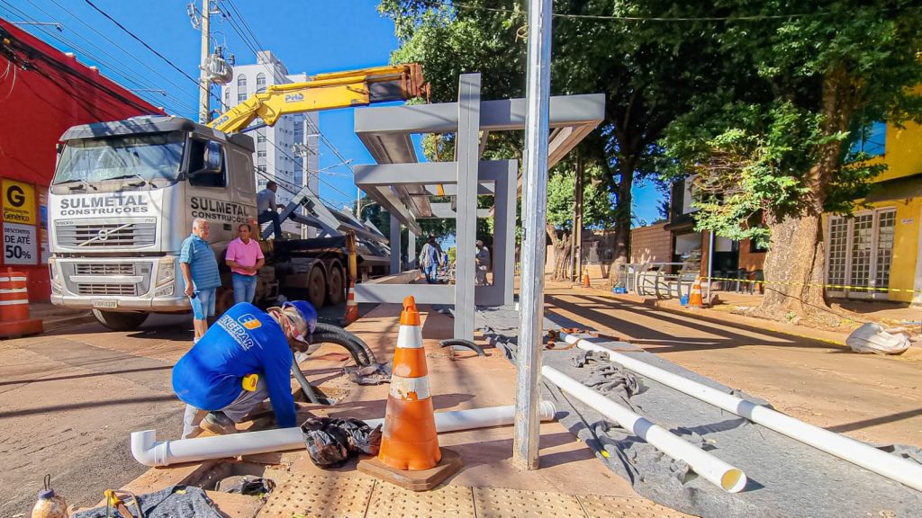 A estrutura de uma das 5 estações de embarque e desembarque projetadas para o corredor do transporte coletivo da Rui Barbosa começou a ser instalada. O serviço foi iniciado pelo ponto da quadra entre as ruas Dom Aquino e Cândido Mariano. As estações terão câmeras de monitoramento, acesso a wi-fi e iluminação inteligente para aumentar a claridade e garantir mais segurança aos usuários durante a espera do coletivo.