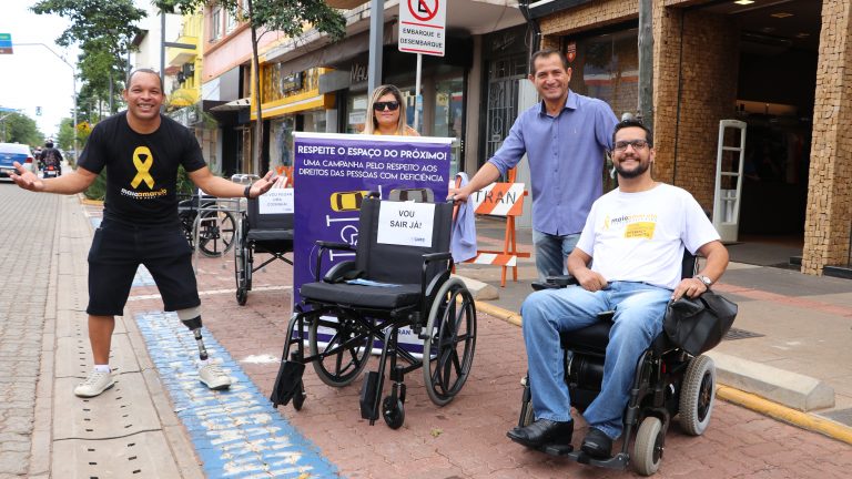 Durante a ação, intitulada como “Esta vaga não é sua – nem por um minuto”, cadeiras de rodas ocuparam todas as vagas disponíveis na Rua 14 de Julho, entre a Afonso Pena e a Rua Barão do Rio Branco, para chamar a atenção dos motoristas que circulavam no local. “É muito comum encontrar veículos estacionados nessas vagas que são garantidas por lei, sem o cartão de identificação do usuário que é de direito, que são cadeirantes, pessoas amputadas, e com deficiências físicas ou motoras. Outra vaga que frequentemente é desrespeitada são as direcionadas para as pessoas idosas”, explica Amadeu Borges, subsecretário da SDHU.