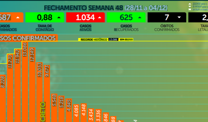 A taxa de contágio, que já chegou a 0,83 no último mês de novembro, hoje está em 0,88. Sinal de alerta para o Secretário de Estado de Saude, Geraldo Resende.