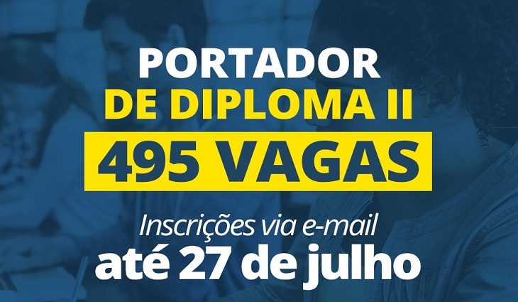 As vagas para o ingresso de portadores de diploma de curso superior são exclusivamente para o ano letivo de 2021. Confira as vagas: