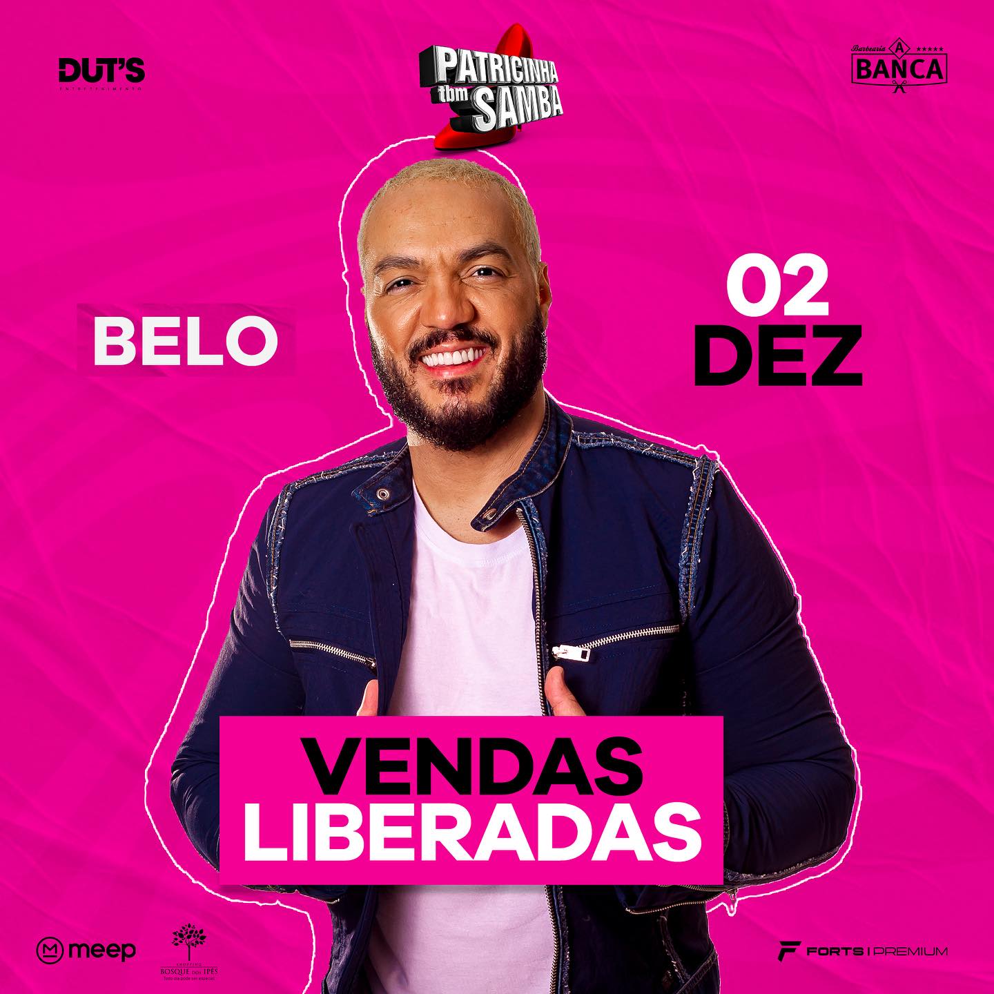 O cantor e compositor Belo é atração principal da festa "Patricinha Também Samba", que há anos é realizada em Campo Grande. O evento será dia 02 de dezembro, no shopping Bosque dos Ipês.